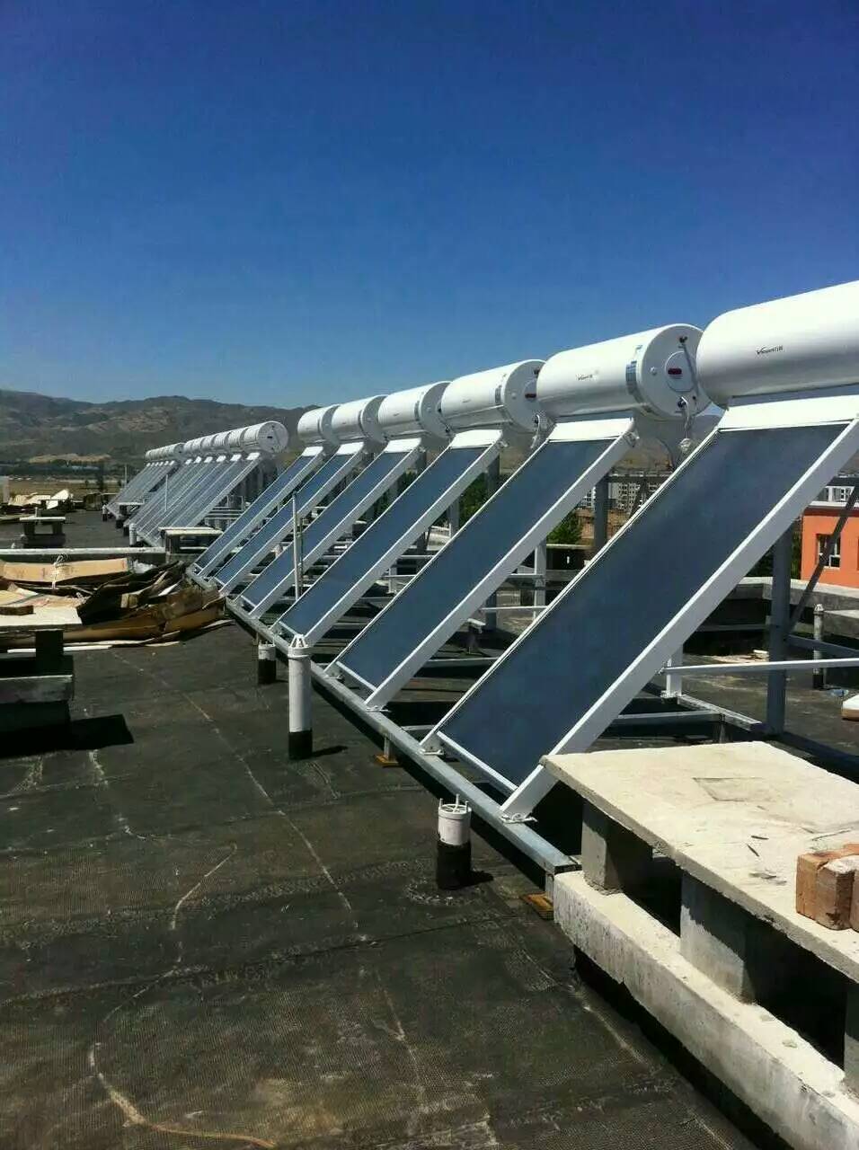 陽高保障房小區位于大同市陽高縣城,該項目一期采用48套150L平屋面太陽能一體機,為該小區144套房供應生活熱水。