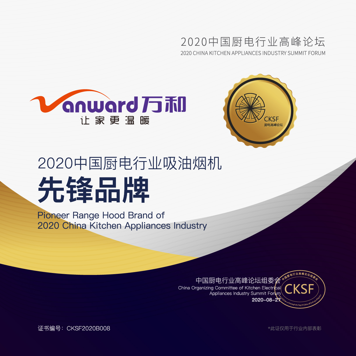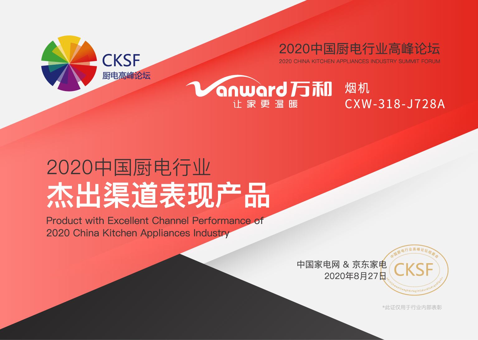 8月27日,由中國家用電器協會和國家信息中心信息化和產業發展部指導、中國家電網主辦的“新潮澎湃 廚享未來——2020廚電行業高峰論壇”在北京舉行。廚電行業知名品牌商、渠道商齊聚一堂,共同探討行業發展新機會。在本次論壇上,萬和斬獲三項大獎:2020中國廚電行業吸油煙機先鋒品牌,2020中國廚電行業杰出渠道表現產品(吸油煙機CXW-318-J28A),2020中國廚電行業集成灶暢銷產品(集成烹飪灶JZT-PZK3)。